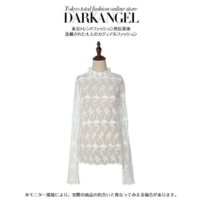 [関連ワード]レースカットソー 長袖 レディース カットソー レース トップス ハイネック モックネック tops プルオーバー インナー ブラウス チュール シースルー きれいめ オフィス 白 黒 春 【 ハイネックレースカットソー 】【春 新作】【2020年1月新作】DarkAngel/ダークエンジェル
