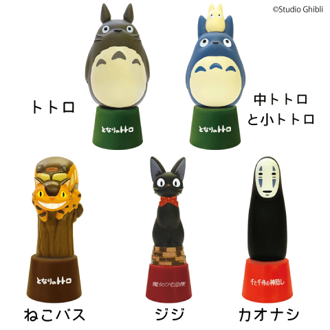 商品名:ジブリキャラ ネーム印スタンド 種類:トトロ(となりのトトロ)、中トトロと小トトロ(となりのトトロ)、ねこバス(となりのトトロ)、ジジ(魔女の宅急便)、カオナシ(千と千尋の神隠し) ※この商品にはネーム9本体は付属しておりません。