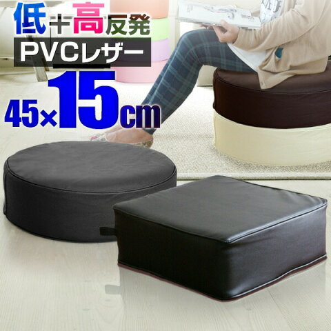 1年保証 座布団 低反発 クッション 45×45 極厚15cm PVCレザー 高反発+低反発 3層構造 低反発クッション 45cm スクエアクッション ラウンドクッション 四角 丸 円 ウレタン 高反発 クッション 椅子 フロアクッション ざぶとん ■